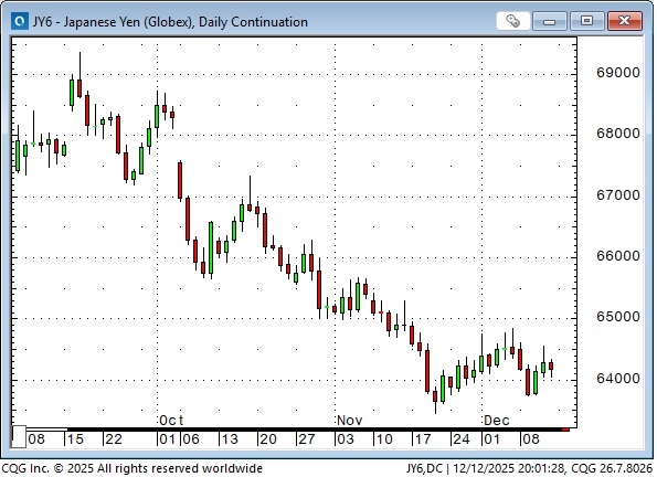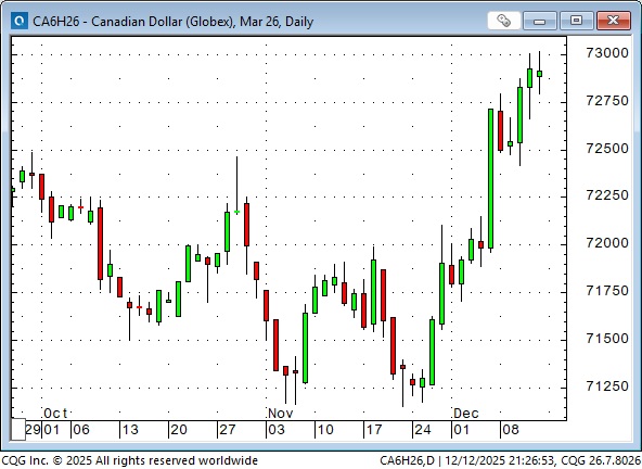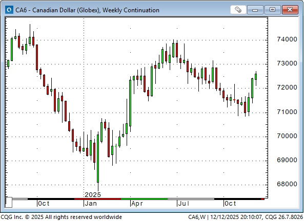 The Canadian dollar trended lower from June to November, falling from ~74 to ~71 cents, and speculators increased their bearish positioning. Recent better-than-expected Canadian employment and GDP data (along with a generally negative view on the USD) inspired some short-covering and a 1.5-cent pop over the last three weeks.