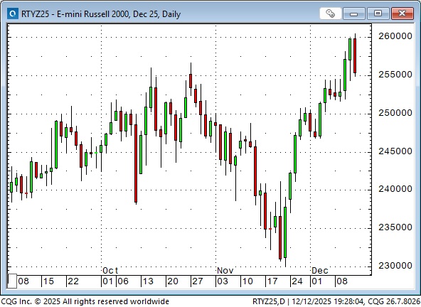 The Dow and the Russell traded to new record highs on Thursday, providing evidence (?) that capital isn’t fleeing the equity markets, it’s just “rotating away” from the high-flying AI issues.
