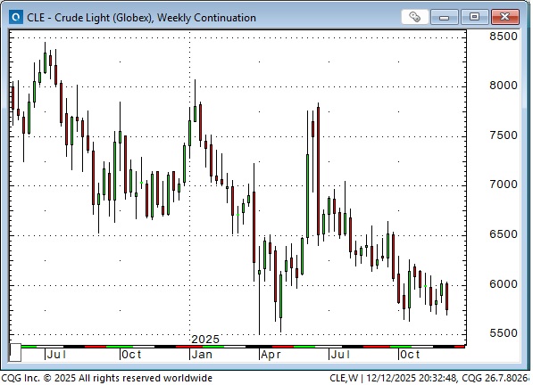 This week’s close on front-month Nymex WTI ($57.53) was the lowest weekly close in nearly five years, as supply continues to outweigh demand.