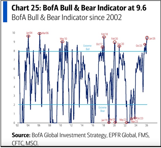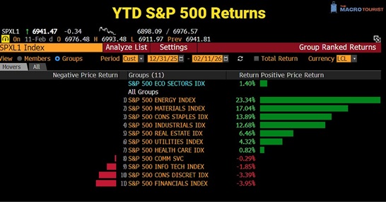 The DXY US Dollar Index briefly touched a 4-year low on January 27 (as the Euro and British Pound briefly traded at 5-year highs). Net capital inflows to the USA in 2025 were ~$1.6 trillion, with ~$700 billion into US equities. Foreigners hold ~$70 trillion of US assets, up ~50% over the past 10 years. (As I like to say, capital flows to the USA for safety and opportunity). This capital has been rewarded as American equities have outperformed the ROW (rest of the world) by a wide margin since the GFC. Still, there have been “rumblings” about possible repatriation or (at least) some increase in hedging currency exposure, which would weigh on the USD.