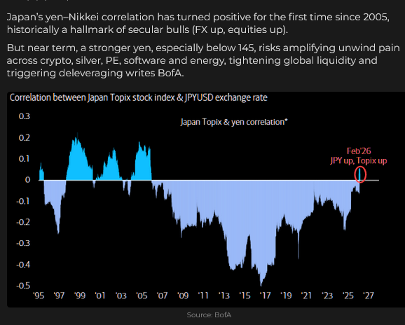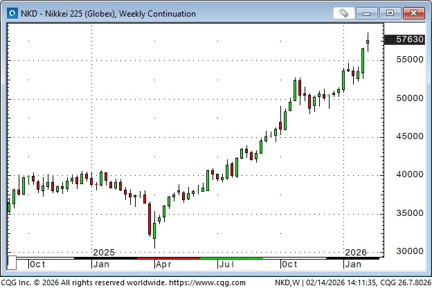 Takaichi won a super-majority in the February 8 election. Markets delivered a solid “Buy Japan” response; the Japanese stock market rallied to record highs, while bond prices and the Yen also rose.