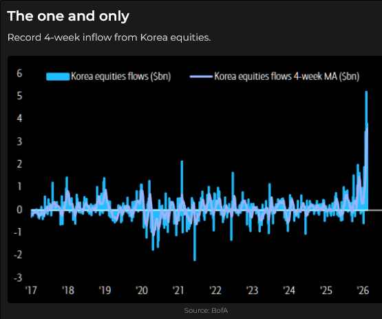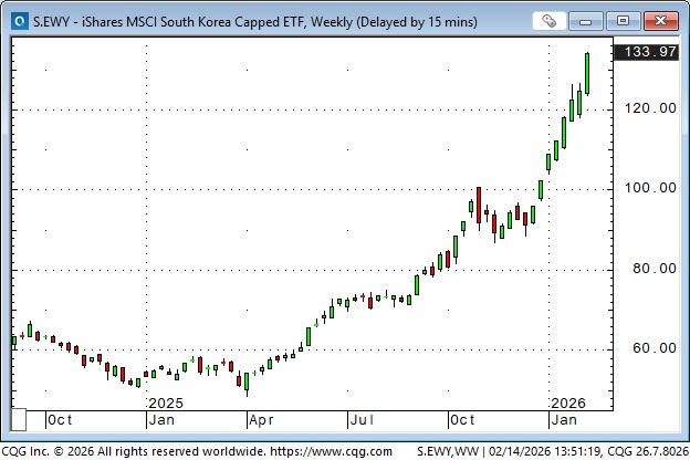 While the multi-year advance in the S&P has stalled over the past several weeks, other indices have been hitting new record highs, with the South Korean market the top performer.