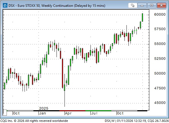 The Euro Stoxx 50 surged to record highs this week, up ~35% from the April lows.