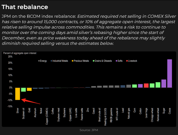 The massive precious metals rally in 2025 will trigger a substantial rebalancing of the index, meaning that (starting last Friday), there will be orderly selling of gold and especially silver over the next several days.