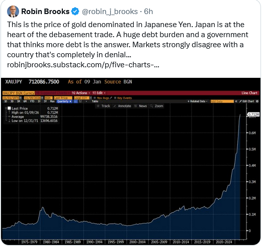 Robin Brooks thinks that the weak Yen is a “safety value” for a country trapped by high and rising debt.