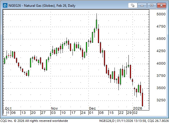 Nymex February natural gas prices have plunged nearly 40% from the early December highs. About 20% of American natural production is now exported (pipeline to Mexico, LNG to Europe). About 40% of US electricity is generated by natural gas-fired plants.