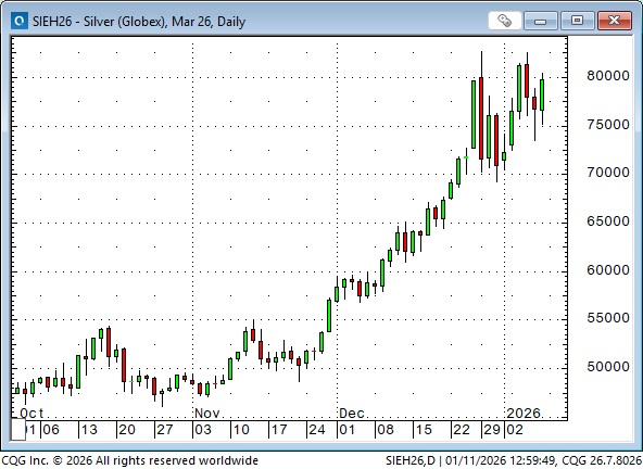 On the January 10 Moneytalks show, Mike and I discussed how geopolitical events are swamping economic data, how global stock markets are soaring to record highs, the wild price action in the precious metals, and the relatively subdued price action in oil markets, given the events in Venezuela and Iran. You can listen to the show here—my spot with Mike starts around the 52-minute mark.