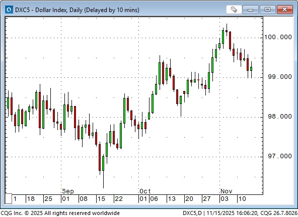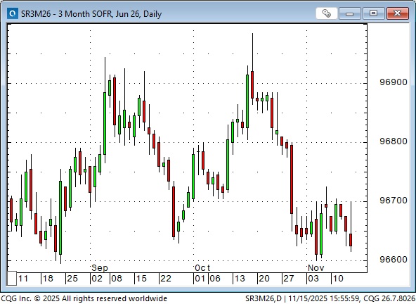 Short-term rates have been rising over the past month, with the market now pricing only a 50/50 chance of the Fed cutting rates in December. That’s down from a 90% chance last month.