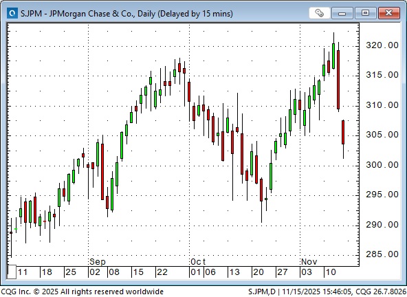 JPM hit an all-time high on Wednesday, but was down ~6.5% at Friday’s lows.