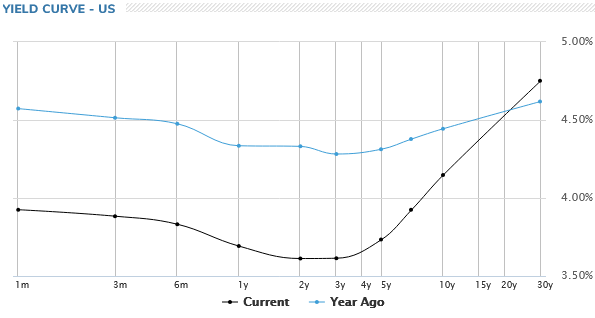 Bond yields have also been rising over the last month, with the 10-year now at ~4.15%, and the 30-year at ~4.75%.