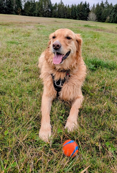 Barney loves chasing a ball almost as much as he loves chewing on sticks. He’s great at chasing a ball and is getting better at bringing it back to me. Here he is having a little rest after 20 minutes of intensive ball chasing!