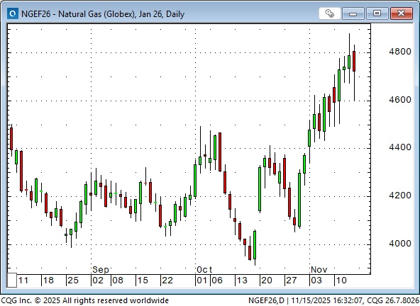 Nymex natural gas prices are preparing for winter, and foreign demand for LNG.